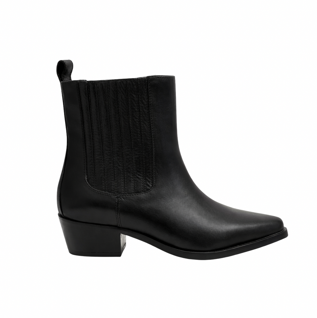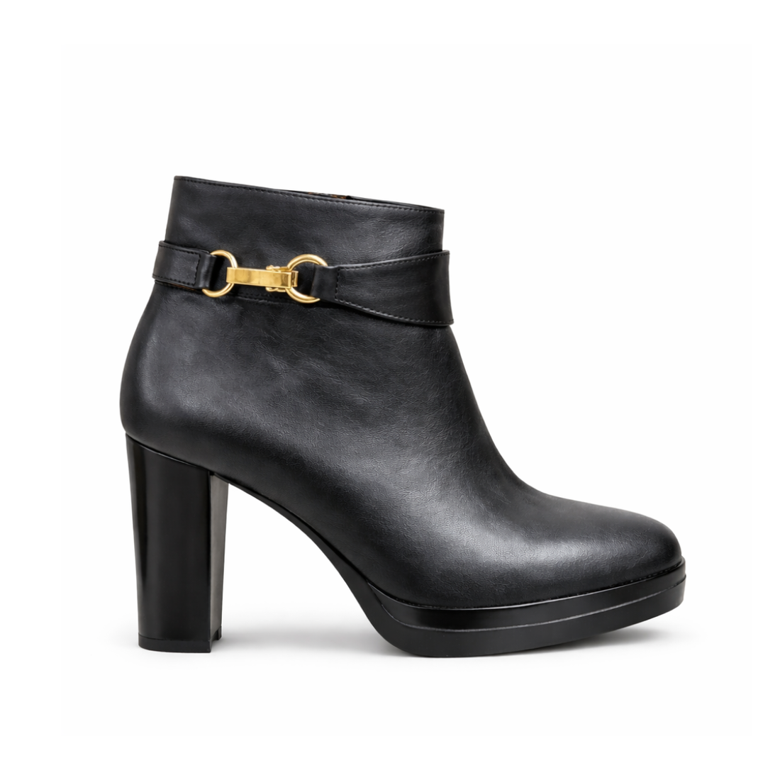 Le modèle Livia incarne une élégance urbaine affirmée. Confectionnée en cuir noir premium, cette bottine...