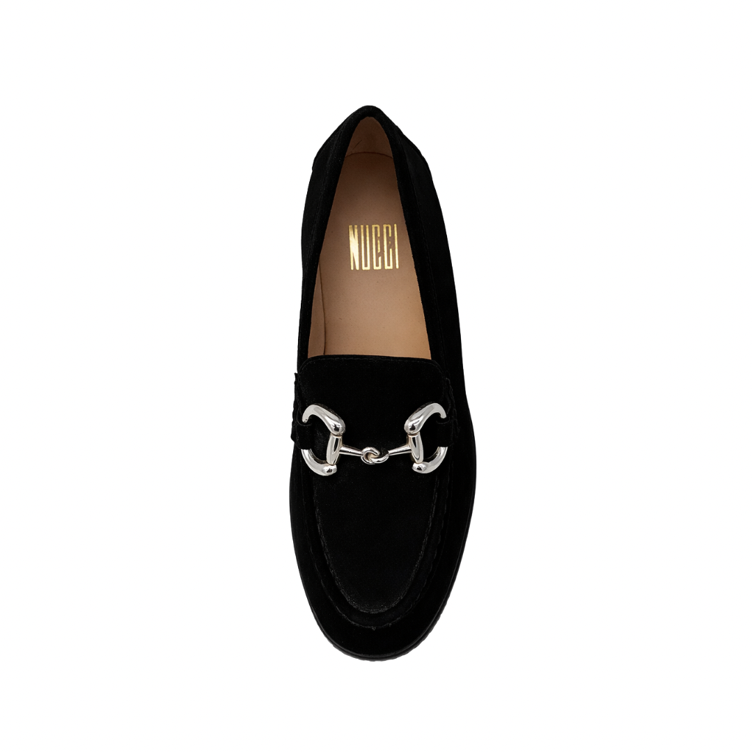 Sobriété chic et allure contemporaine définissent ce mocassin femme au design épuré. Confectionné en suédine noire douce au toucher, il apporte une élégance discrète et raffinée, idéale pour un style urbain maîtrisé.